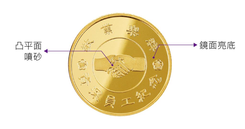 1.客製幣面區域可依客戶用途及需求,雕刻圖像與文案,雕刻效果為單線字體 或 描繪外框的中空字體,因雕刻為破壞性方式,仿實心字體需反覆刻畫,會產生粗糙的毛邊,故不建議使用。