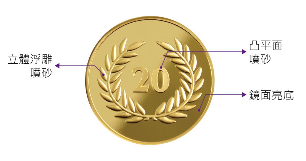1.客製幣面區域可依客戶用途及需求,雕刻圖像與文案,雕刻效果為單線字體 或 描繪外框的中空字體,因雕刻為破壞性方式,仿實心字體需反覆刻畫,會產生粗糙的毛邊,故不建議使用。