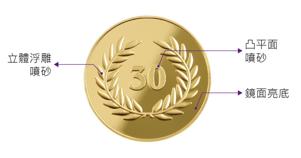 1.客製幣面區域可依客戶用途及需求,雕刻圖像與文案,雕刻效果為單線字體 或 描繪外框的中空字體,因雕刻為破壞性方式,仿實心字體需反覆刻畫,會產生粗糙的毛邊,故不建議使用。