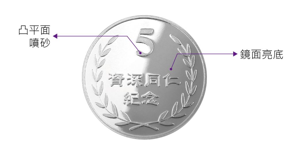 1.客製幣面區域可依客戶用途及需求,雕刻圖像與文案,雕刻效果為單線字體 或 描繪外框的中空字體,因雕刻為破壞性方式,仿實心字體需反覆刻畫,會產生粗糙的毛邊,故不建議使用。