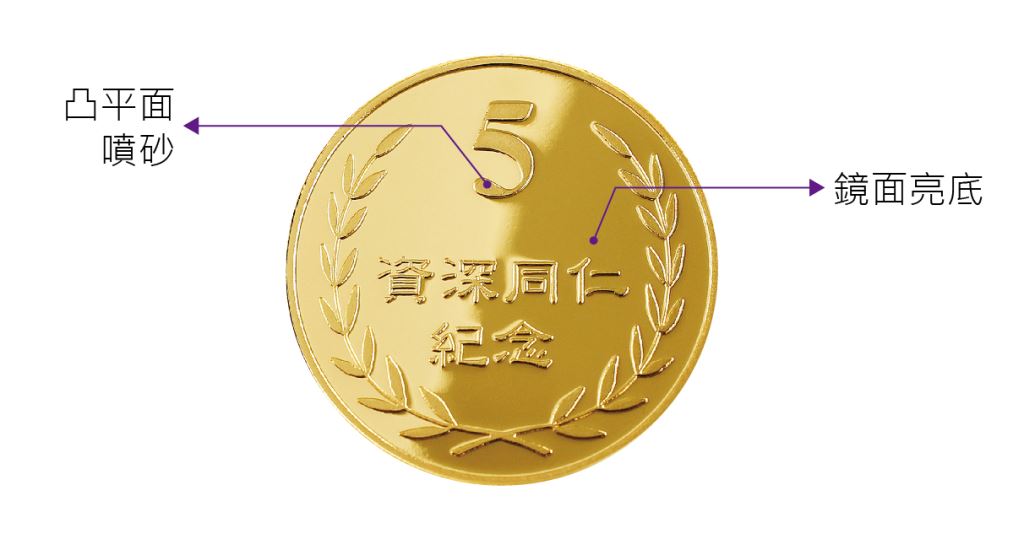 1.客製幣面區域可依客戶用途及需求,雕刻圖像與文案,雕刻效果為單線字體 或 描繪外框的中空字體,因雕刻為破壞性方式,仿實心字體需反覆刻畫,會產生粗糙的毛邊,故不建議使用。