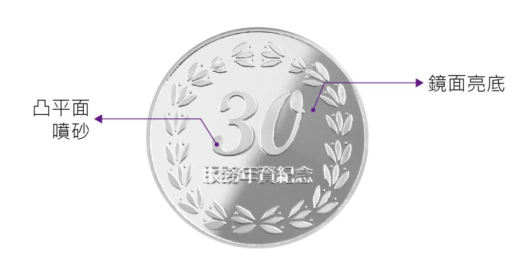 1.客製幣面區域可依客戶用途及需求,雕刻圖像與文案,雕刻效果為單線字體 或 描繪外框的中空字體,因雕刻為破壞性方式,仿實心字體需反覆刻畫,會產生粗糙的毛邊,故不建議使用。