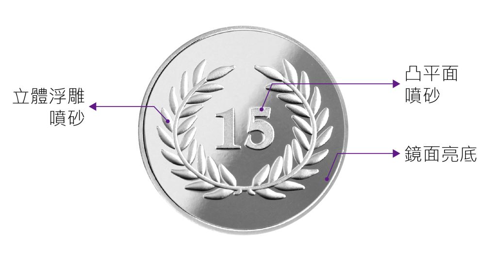 1.客製幣面區域可依客戶用途及需求,雕刻圖像與文案,雕刻效果為單線字體 或 描繪外框的中空字體,因雕刻為破壞性方式,仿實心字體需反覆刻畫,會產生粗糙的毛邊,故不建議使用。