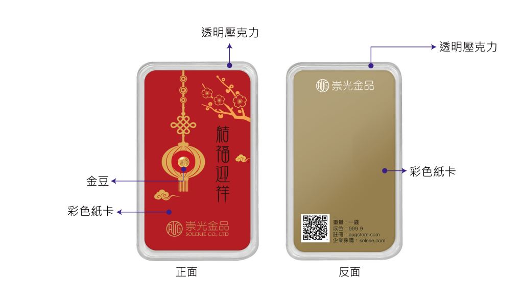 包裝配件:密封壓克力透明保護殼+保單註冊紙卡+紅包袋(紅包袋與盒內紙卡皆可客製化,客製化資訊請來電洽詢)