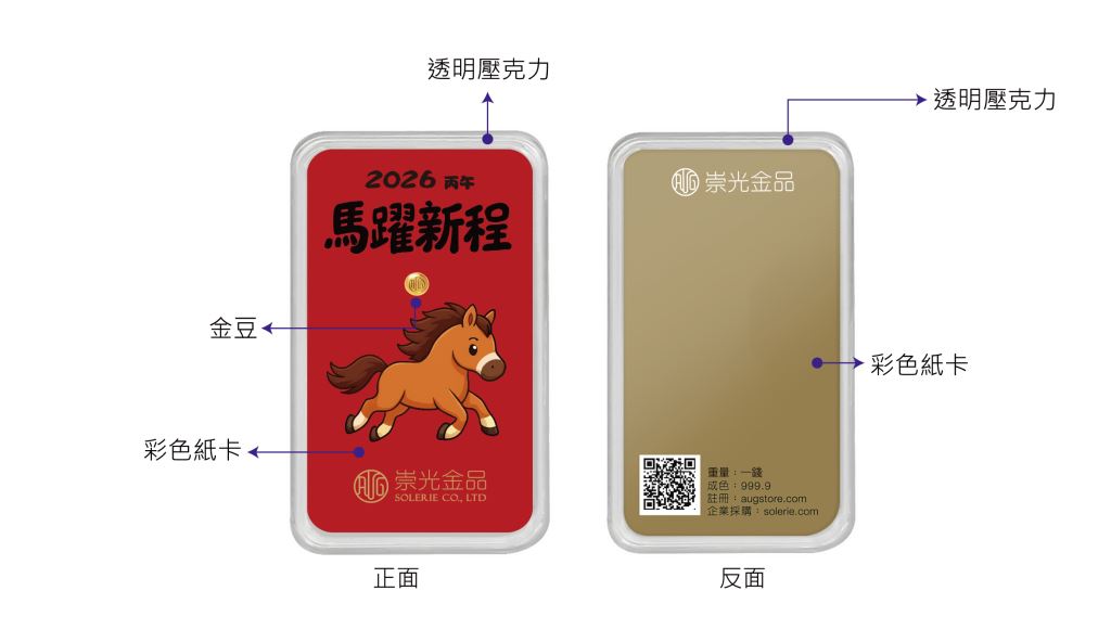 包裝配件:密封壓克力透明保護殼+保單註冊紙卡+紅包袋(紅包袋與盒內紙卡皆可客製化,客製化資訊請來電洽詢)