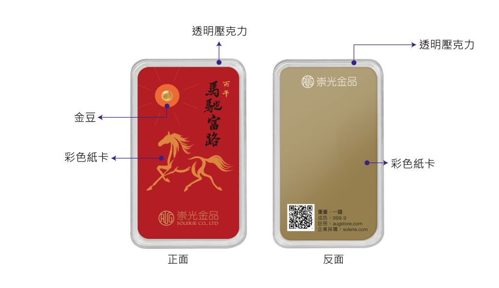 包裝配件:密封壓克力透明保護殼+保單註冊紙卡+紅包袋(紅包袋與盒內紙卡皆可客製化,客製化資訊請來電洽詢)